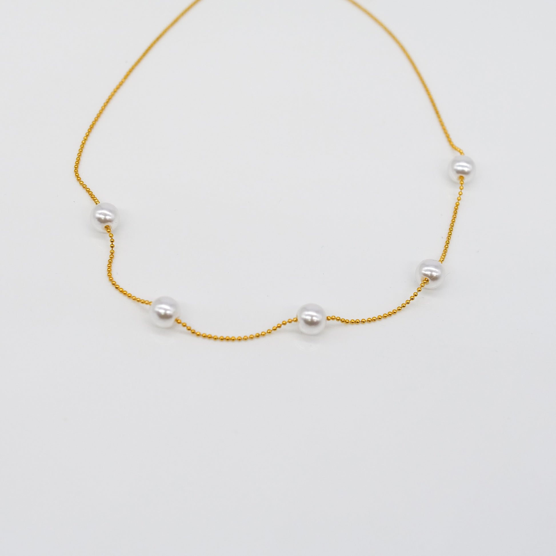 Collier minimaliste avec 5 perles espacées en plaqué or 18K
