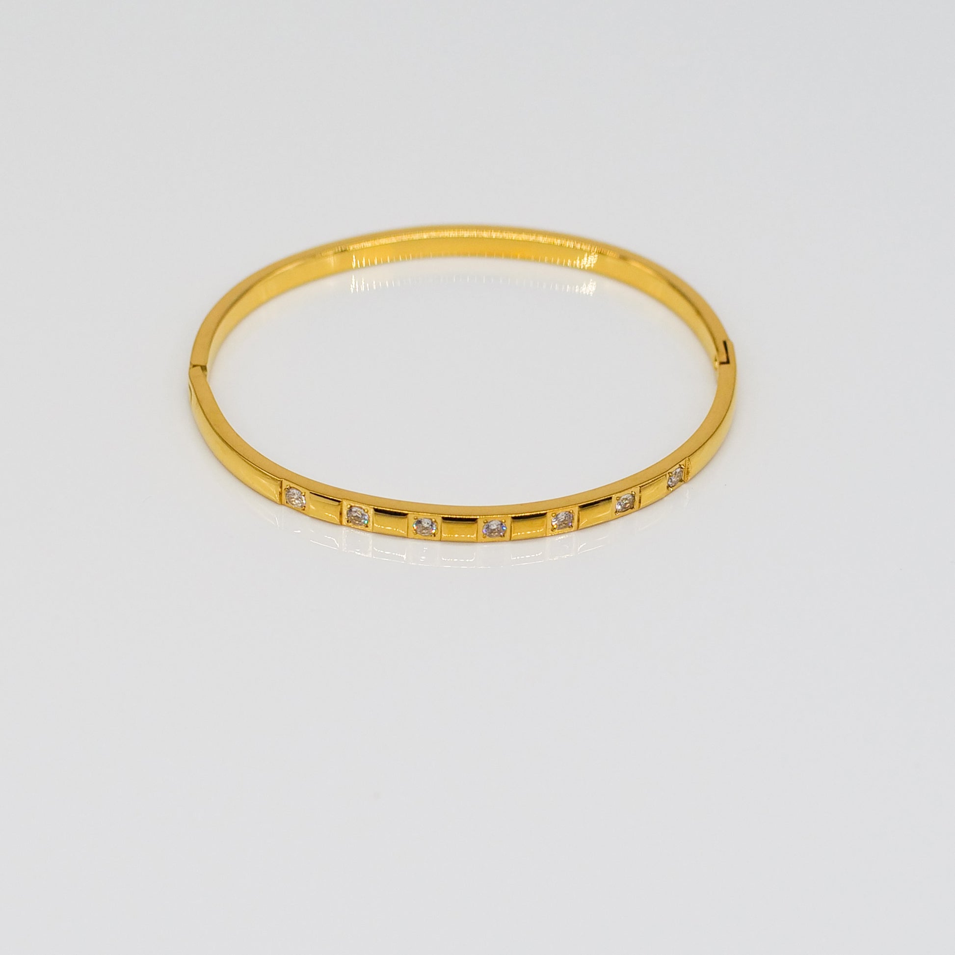 Bracelet simple et raffiné orné de sept petits carrés facettés qui captent la lumière comme des diamants. Fabriqué en acier inoxydable plaqué or 18K, hypoallergénique et résistant à l’eau, il offre une touche d’éclat subtile à votre poignet.